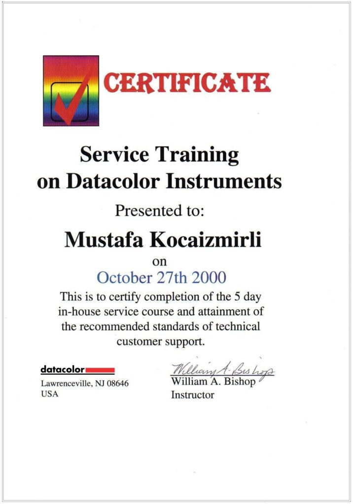 DATACOLOR RENK ÖLÇÜM SİSTEMLERİ TEKNİK EĞİTİM SERTİFİKASI – AMERİKA
