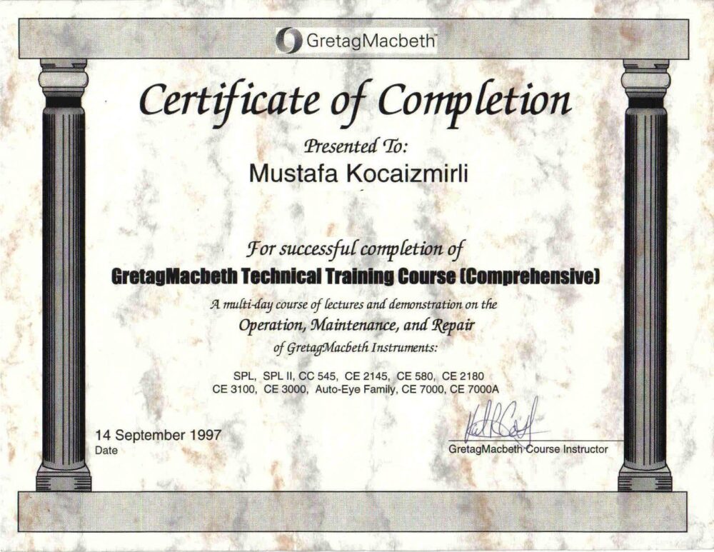 GRETAGMACBETH RENK ÖLÇÜM SİSTEMLERİ TEKNİK EĞİTİM SERTİFİKASI – ALMANYA