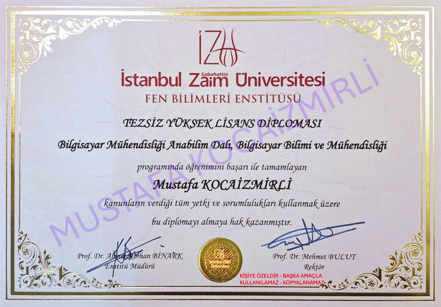 BİLGİSAYAR MÜHENDİSLİĞİ YÜKSEK LİSANS DİPLOMASI