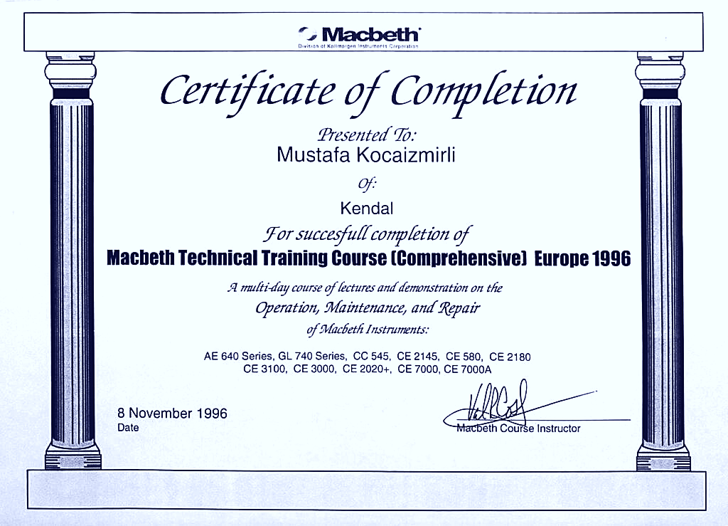 MACBETH RENK ÖLÇÜM SİSTEMLERİ TEKNİK EĞİTİM SERTİFİKASI – ALMANYA