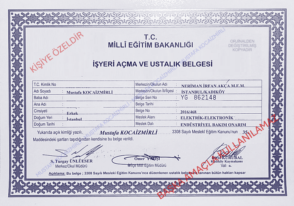 İŞYERİ AÇMA VE USTALIK BELGESİ