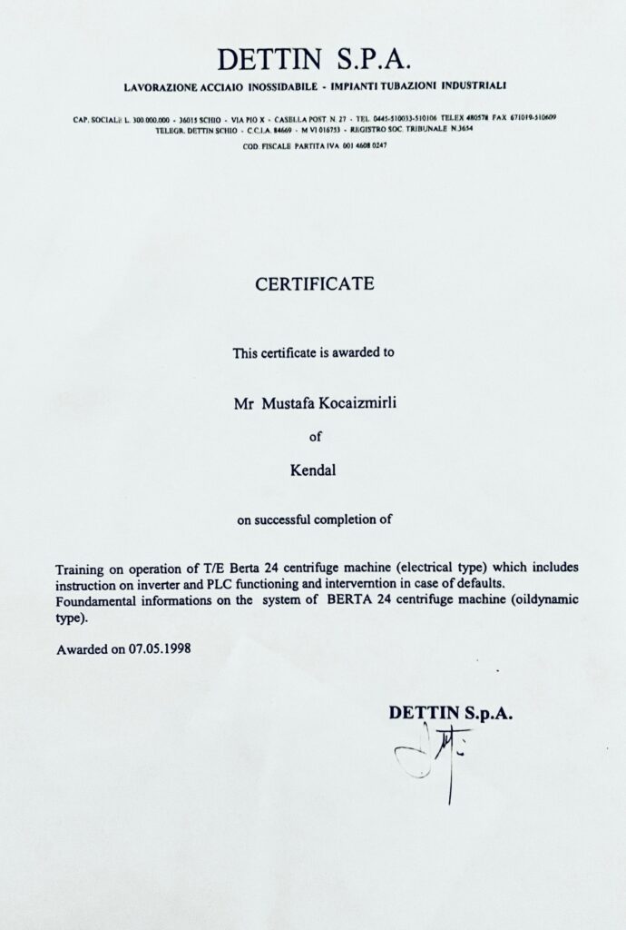 DETTIN TEKNİK EĞİTİM SERTİFİKASI – ITALYA